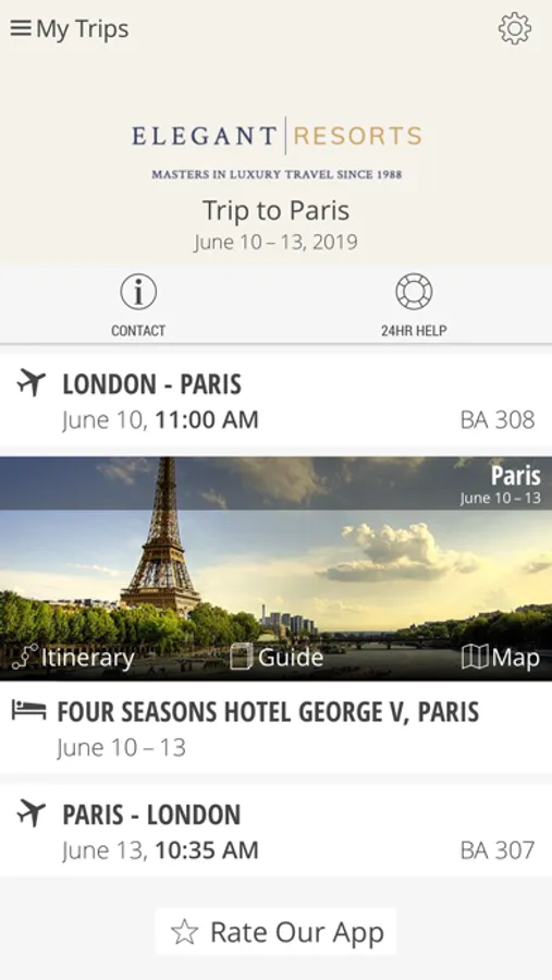 Available for travelling clients of Elegant Resorts, our Travel App is the perfect companion to take with you on your next Elegant Resorts luxury holiday and is the perfect complement to our exemplary concierge service and luxury travel expertise.