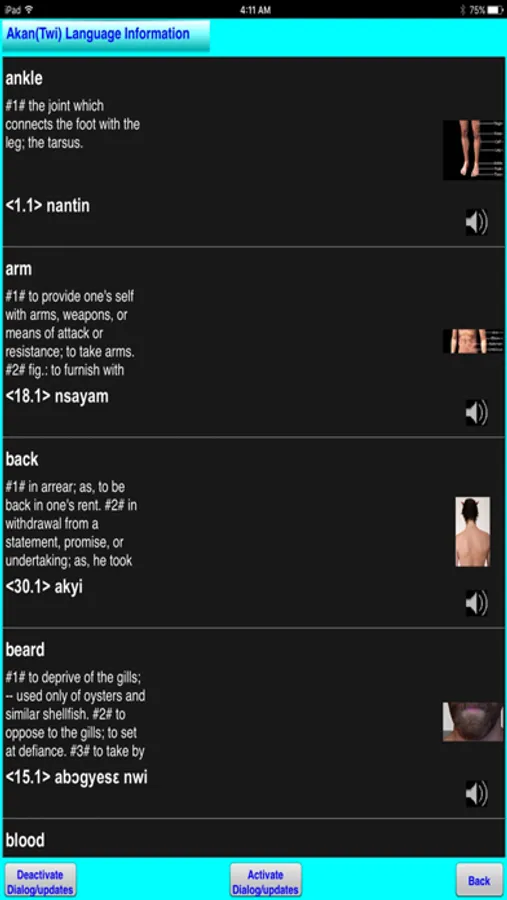 The Akan(Twi) translations are also aided by media display such as pictures or video information.