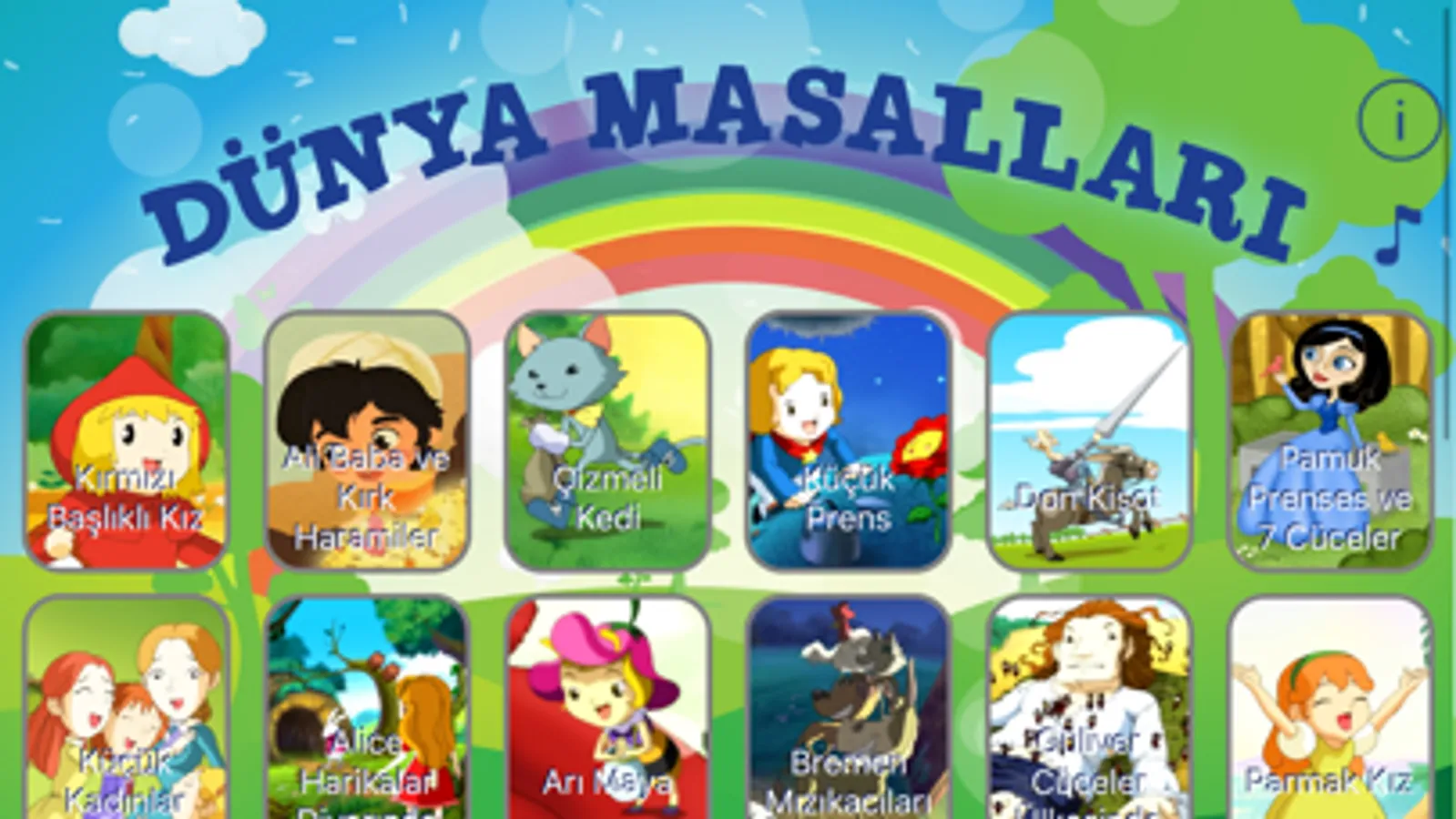Uygulamayı bir kez indirdiğinizde aşağıdaki 24 adet popüler Dünya masal ve hikayelerine sahip olacaksınız: