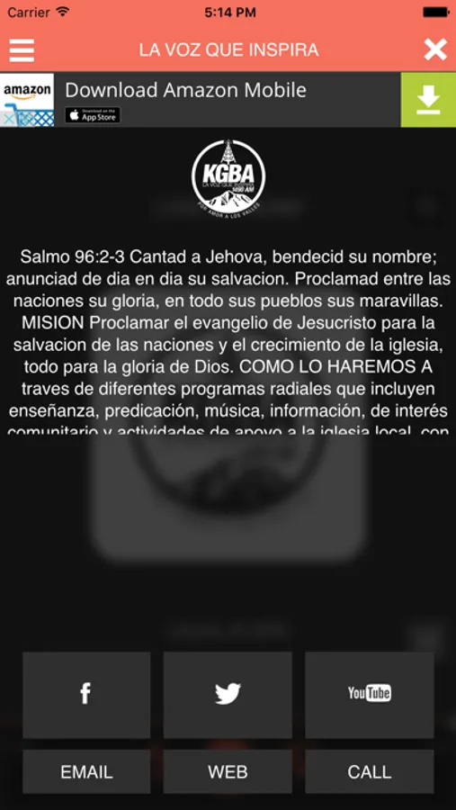 MISION Proclamar el evangelio de Jesucristo para la salvacion de las naciones y el crecimiento de la iglesia, todo para la gloria de Dios. NUESTRA VISION Ser La Voz que Inspira a conocer y amar a Jesus, en la radio, el internet y redes sociales, reconocida por su contenido de calidad, prestando un servicio a traves de la excelencia en el equipo técnico y el cuerpo de servicio; aumentando cada vez mas su alcance, su tecnificacion, suprogramacion, su locatividad y su eficiencia tanto para los usuarios como para su equipo de trabajo, llegando a ser La Voz que Inspira tanto para el radio escucha, como un modelo optimo de servicio. De Salvation Mountain en Mount Signal llegamos a Brawley, Calexico, Calipatria, El Centro, Holtville, Imperial, Westmorland, Bombay Beach, Desert Shores, Heber, Niland, Ocotillo, Salton Sea Beach, Salton City, Seeley. Descarga nuestra aplicación para escuchar KGBA 1490 AM Radio Cristiana en la red!