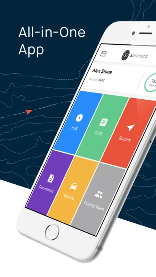 The free Samsara Driver app provides drivers with dispatch job management, hours of service (HOS), and driver-vehicle inspection reporting (DVIR). An easy-to-use interface means less paperwork, improved compliance, and greater visibility across the entire fleet.
