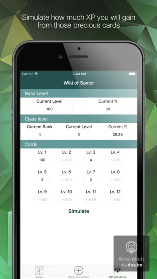 Current version contains game maps with secrets, stats simulator, cards xp simulator and search of recipes.