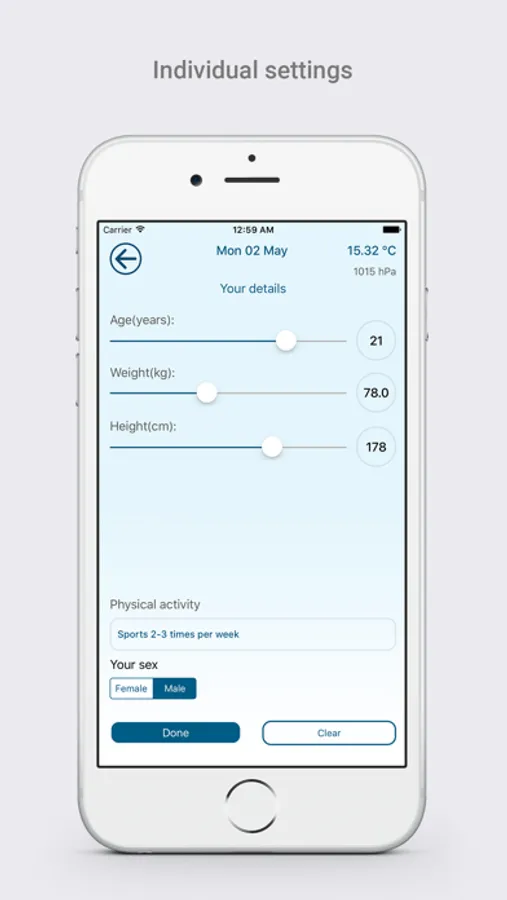 The calculations used in this application are based on international standards and have averaged indicators. The calculation that results is individually customized and provides recommendations rather than rigid requirements.