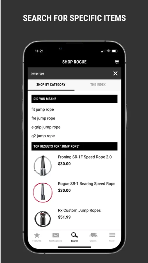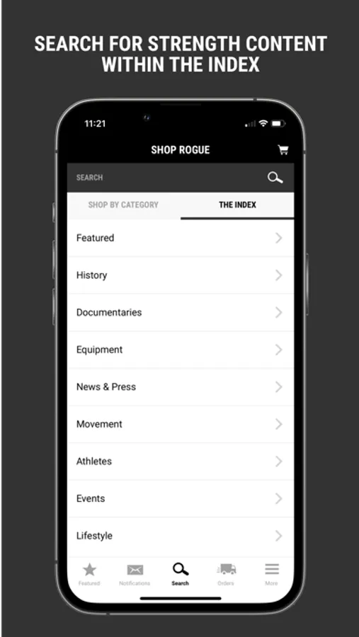 Find what you need, and a few things you didn't know you needed. The Rogue app gives the user full, easy-to-navigate access to each store’s catalog. This includes exclusive American-made Rogue power racks, barbells, and bumper plates, as well as hundreds of products and accessories from dozens of other reputable fitness brands. From pull-up rigs to gymnastics rings, mobility tools to weightlifting shoes—it’s all here.