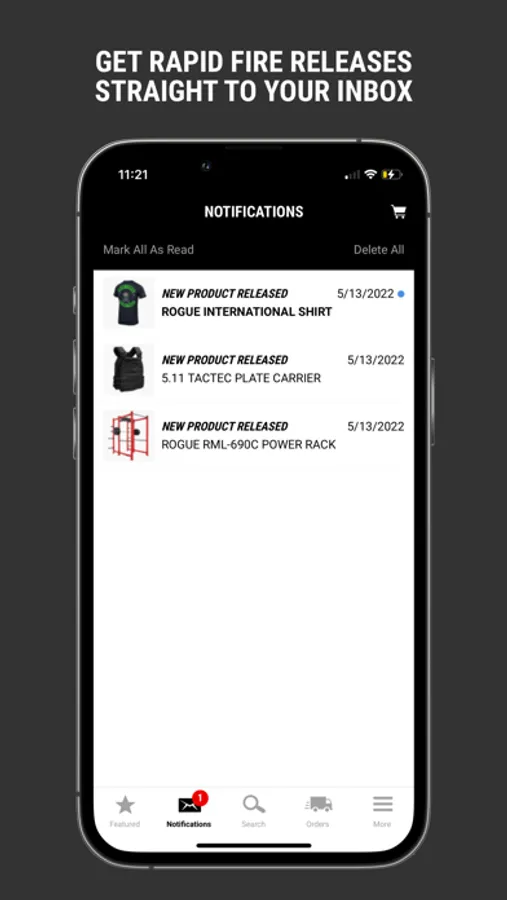 Your Rogue account makes it possible to receive Rapid Fire new product alerts as well as Back-In-Stock notifications for any item that may have sold out in the past.