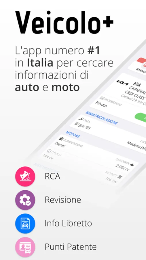 Veicolo+ è l'app numero #1 in Italia per cercare informazioni di auto e moto.