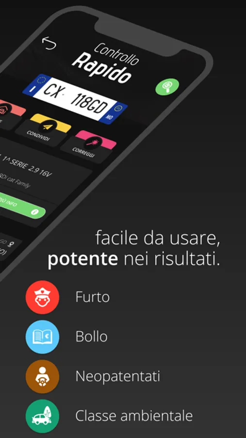 Potrai controllare le caratteristiche tecniche di un veicolo, verificarne la copertura RCA, controllare il furto, calcolarne il bollo o verificare la revisione conoscendone semplicemente la targa.
