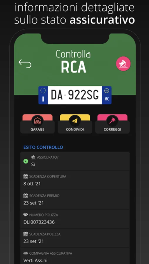 • Dati assicurativi (stato assicurativo, scadenza della polizza).