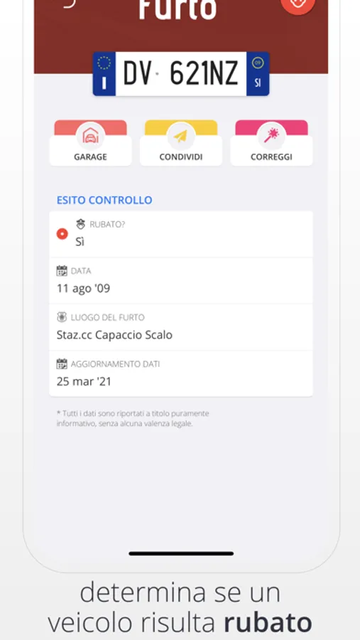 ** Tutti i dati riportati all'interno dell'app sono a titolo puramente informativo, senza alcuna valenza legale. **