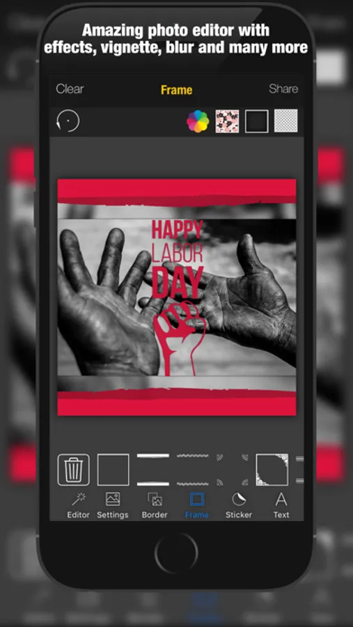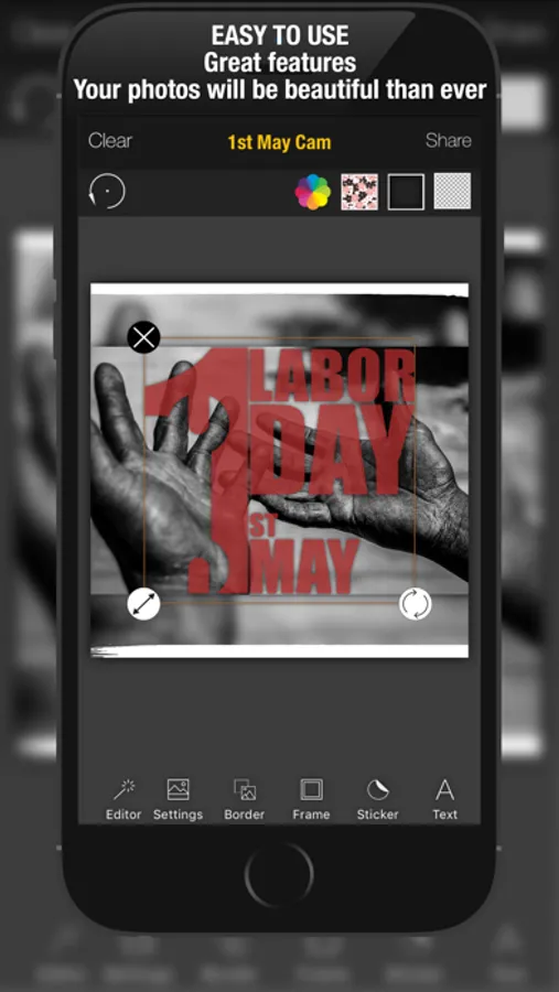 » You can add your own textures even your own photo and you can use them as border, frame, text, sticker texture.