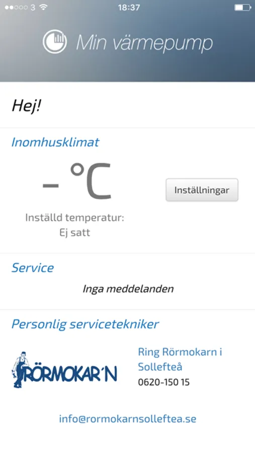 Min värmepump låter dig se status för din värmepump och när senaste service är gjord.