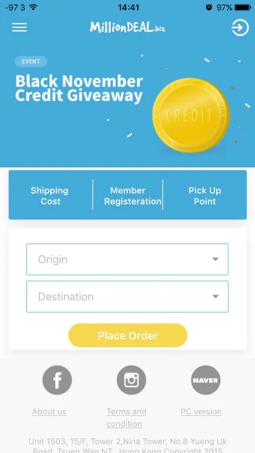 International shipping with the Milliondeal.biz Application, Milliondeal.biz members can download App and to use to