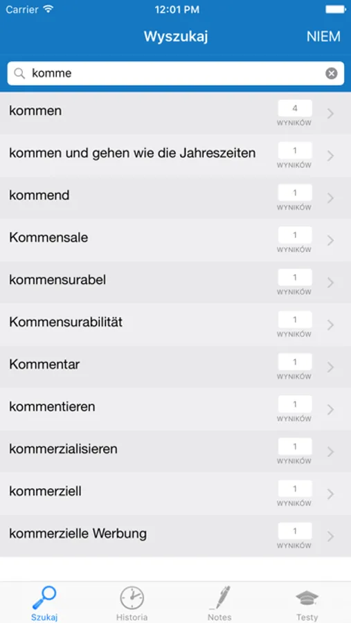 - szybkie wyszukiwanie haseł w czasie pisania,