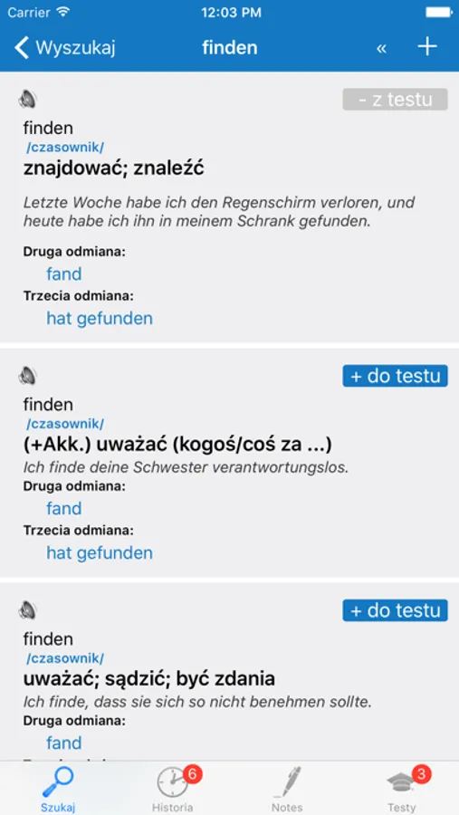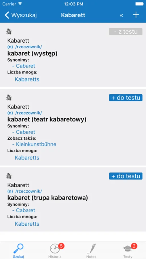 - zakładki umożliwiające oznaczenie ulubionych lub sprawiających szczególną trudność haseł,