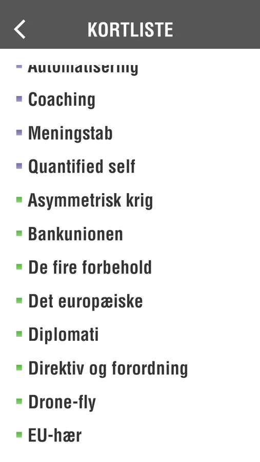 Kort om samfundsfag er en app, der kan bruges til repetere de mange begreber og faglige sammenhænge i samfundsfag.