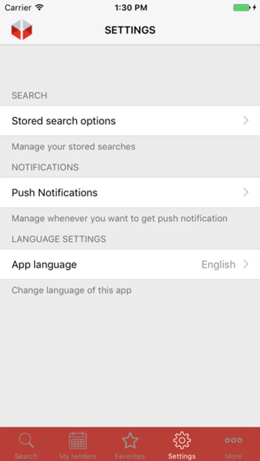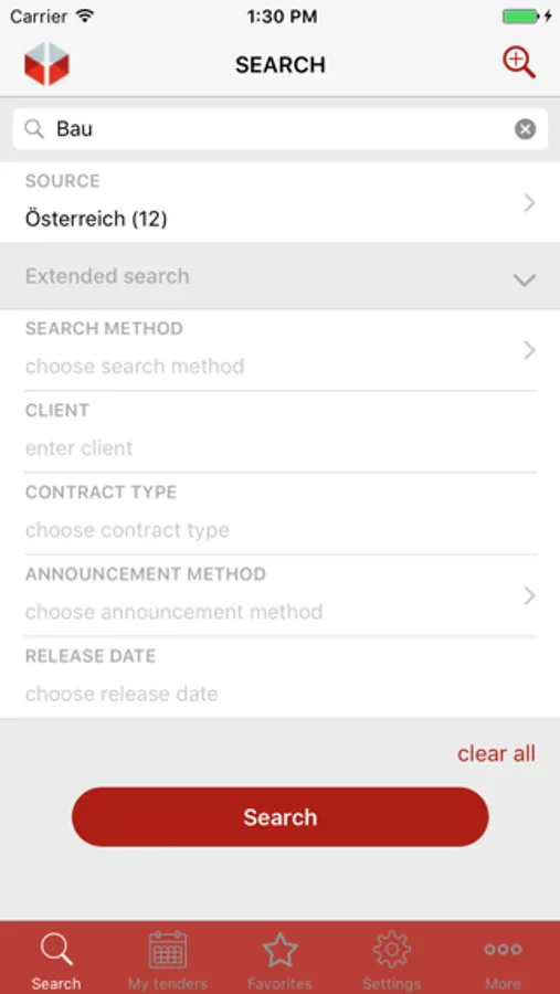 In the App you can search for tenders, mark tenders you are interested in and put them on a „Favorites“ list. Once you have downloaded public tender documents of a Favorite via Vergabeportal the tender switches from „Favorites“ to the list „My Tenders“. Regarding these public procurement procedures you will be given notice about important deadlines and incidents. Closing dates will automatically be stored onto your calender included in the App and you decide how many days or hours in advance you want to receive reminders.