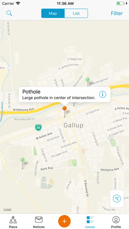 For those potholes, damaged street signs, and other local problems that need attention, the Gallup Connect app makes reporting a problem easier than ever.This app uses GPS to recognize your location and gives you a menu of common quality-of-life conditions to select from.The app allows you to upload pictures or videos to accompany your request.The mobile app can also be used for a variety of other issues such as street maintenance, street light problems, damaged trees, graffiti, and others.Residents can track the status of reports they or other members of the community have submitted