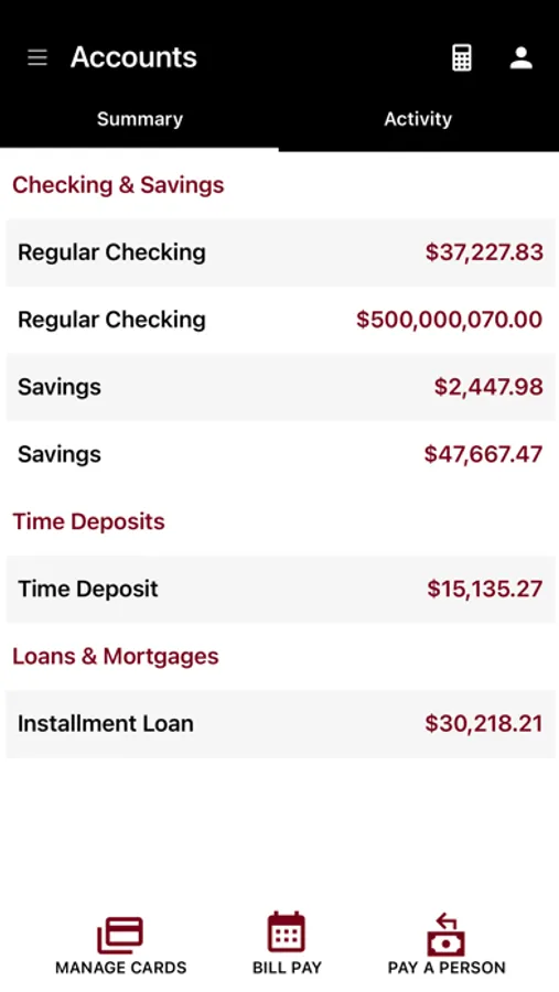 **Online customers must first setup transfer and bill pay accounts prior to using these features.