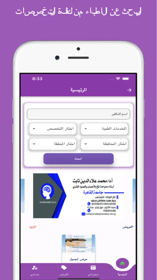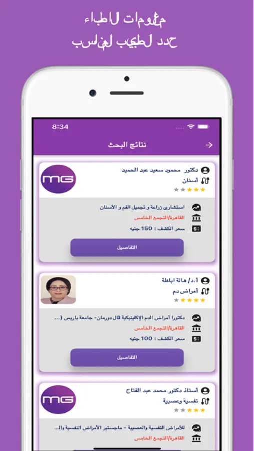 الان ومن علي موبايلك يمكنك البحث عن اي طبيب في الدليل الطبي سواء في القاهرة او الاسكندرية او دبي