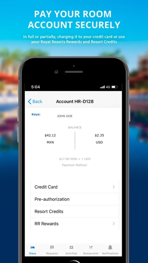 Mobile App for Royal Resorts guests.