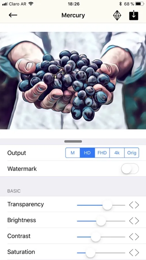This free app limits output resolution and adds a watermark; you can unlock the entire library, hide watermarks and ads, use custom styles and enable high resolution via an in-app subscription.