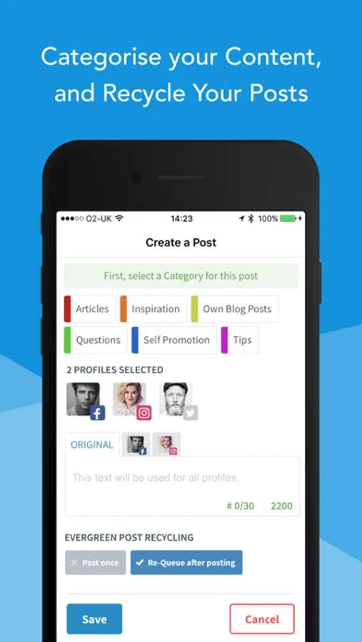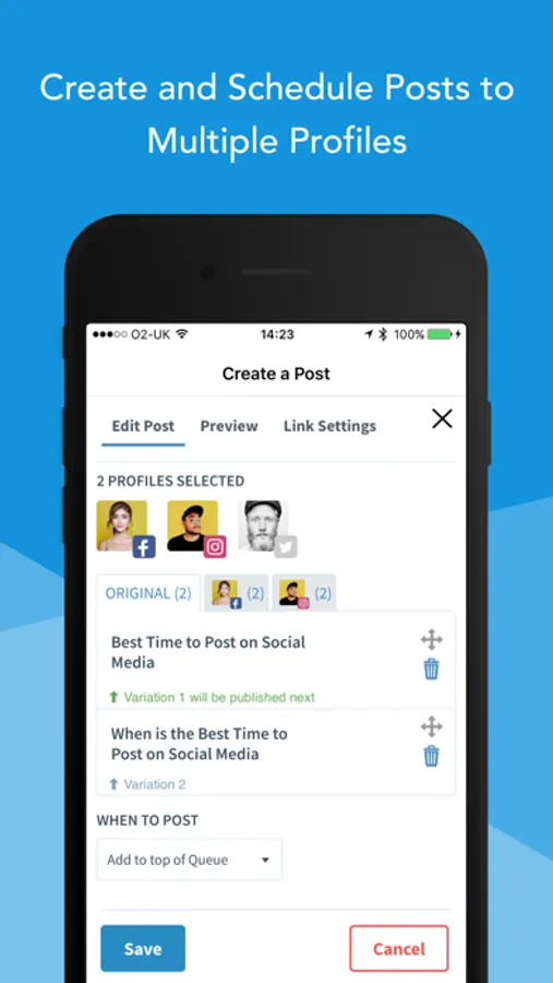 • Schedule posts to Facebook, Instagram, Pinterest, Twitter, and LinkedIn from your iPhone