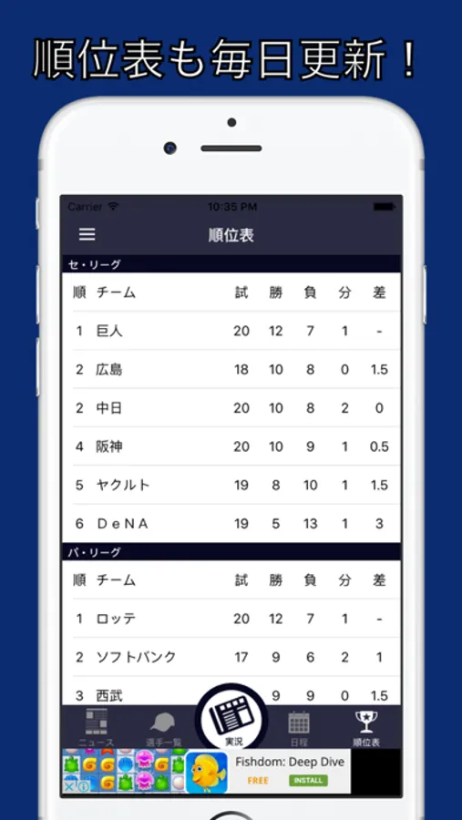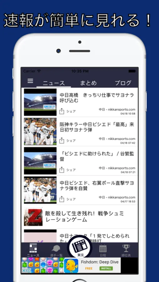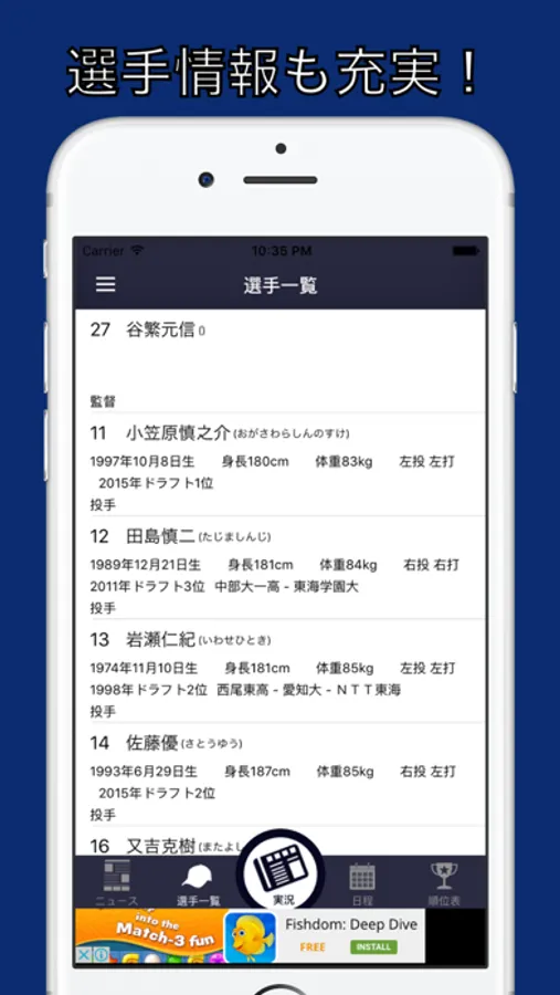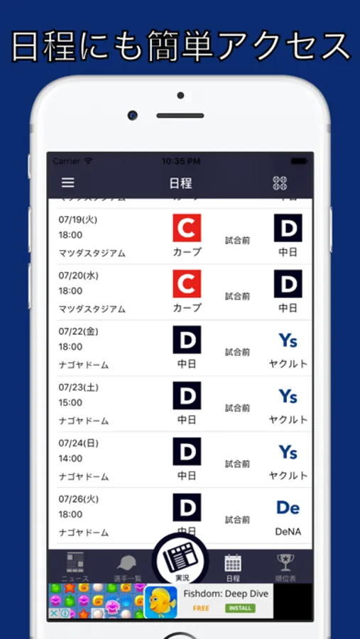 このアプリでドラゴンズの最新ニュース、動画はもちろん順位もすぐに確認できます!試合を見ながらみんなでコメントできる"実況機能"もあります。