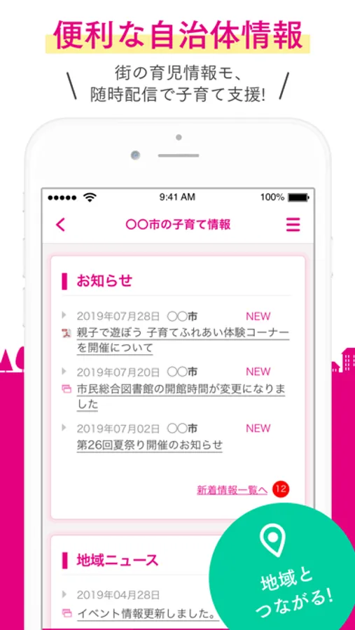 不安だらけの妊娠中・子育ても、自治体からの役立つ情報がお手元に届くので、安心して行えます。