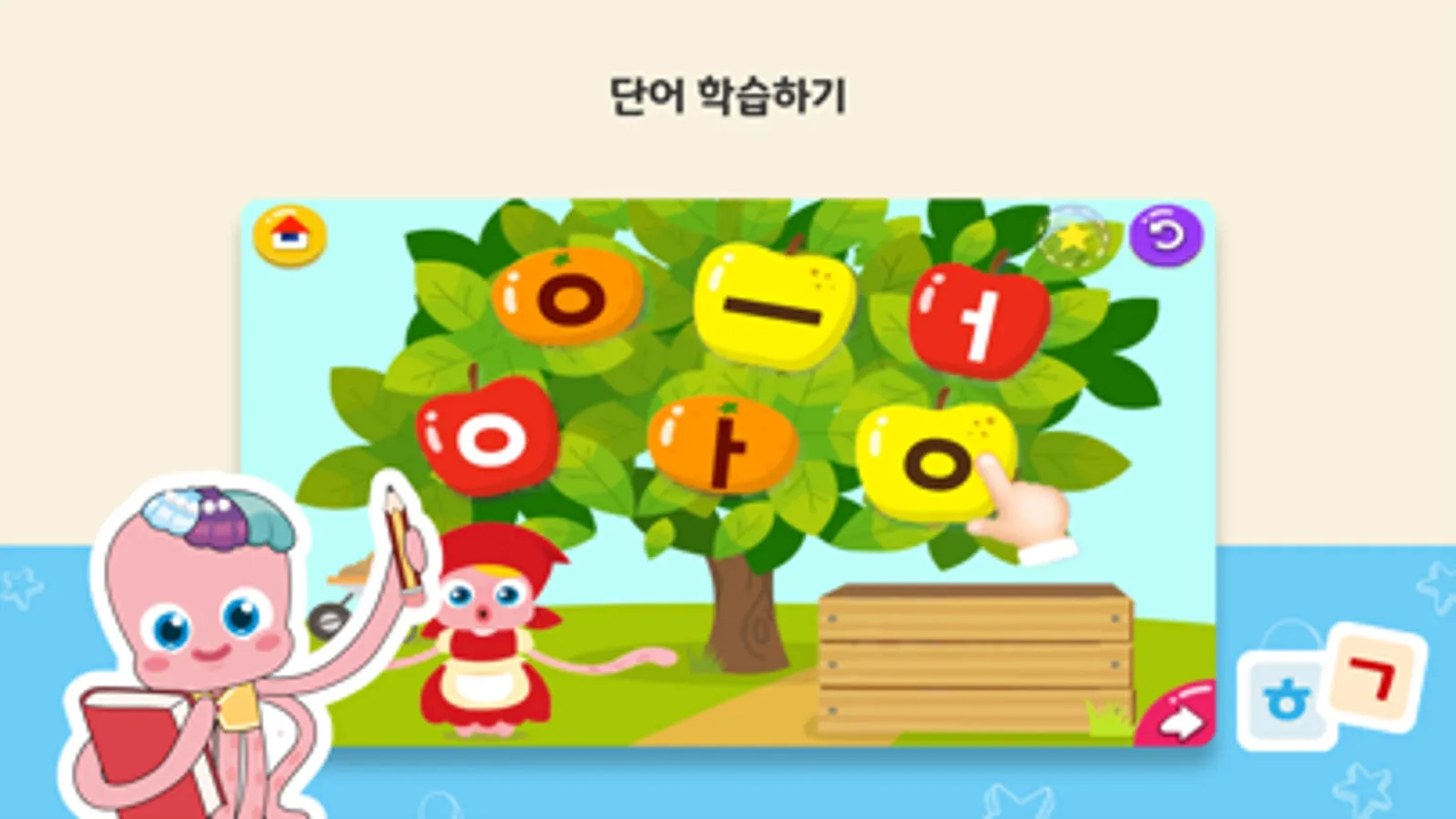 2호~4호: 한글 기본 음절표 학습 - 한글의 기본 음절표를 익히고, 관련된 글자 등을 배워 볼 수 있어요.