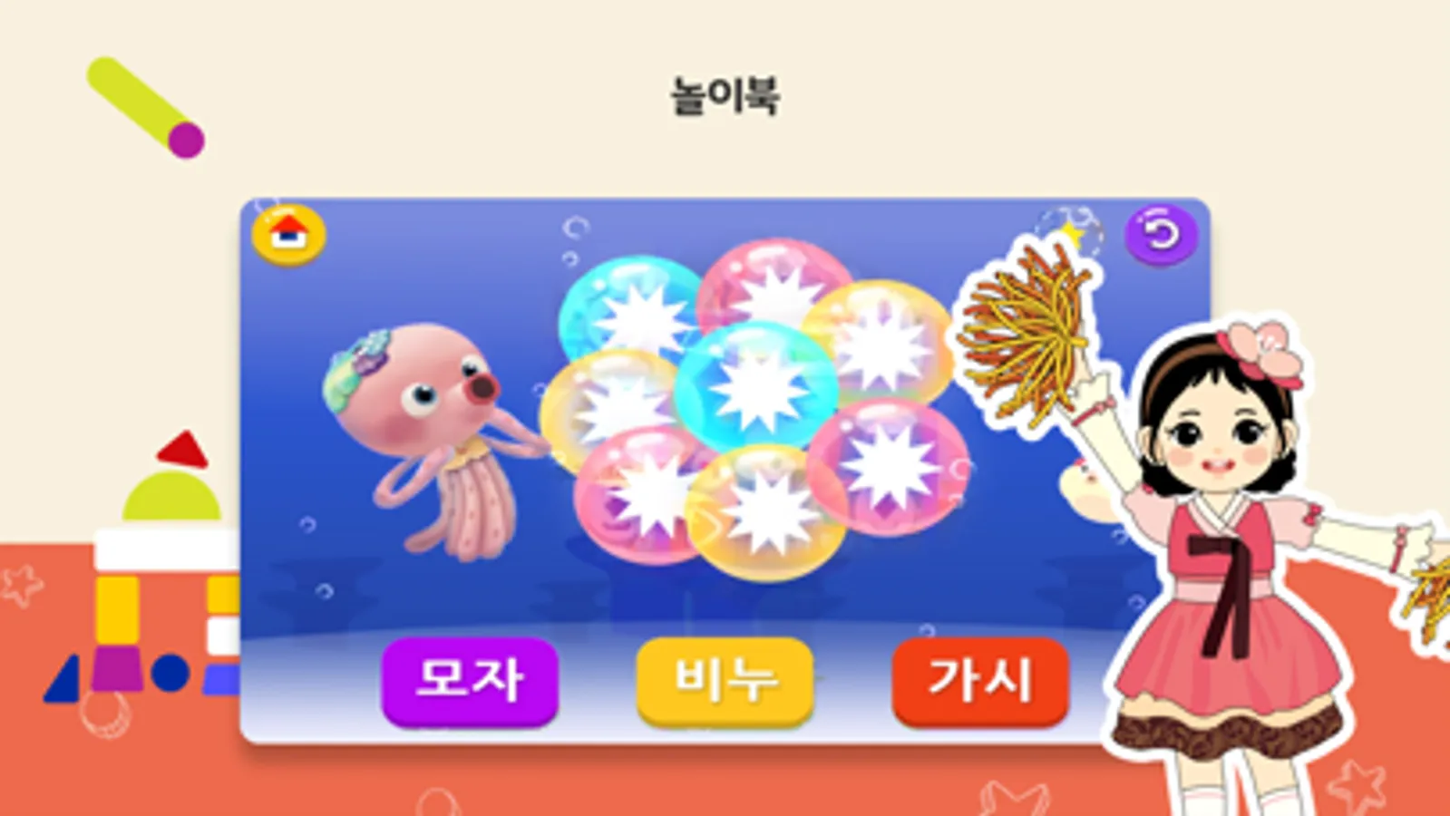 5세부터 초등학교 입학 전 어린이 대상으로 한글을 읽고 쓸 수 있도록 구성한 한글학습 프로그램 입니다.