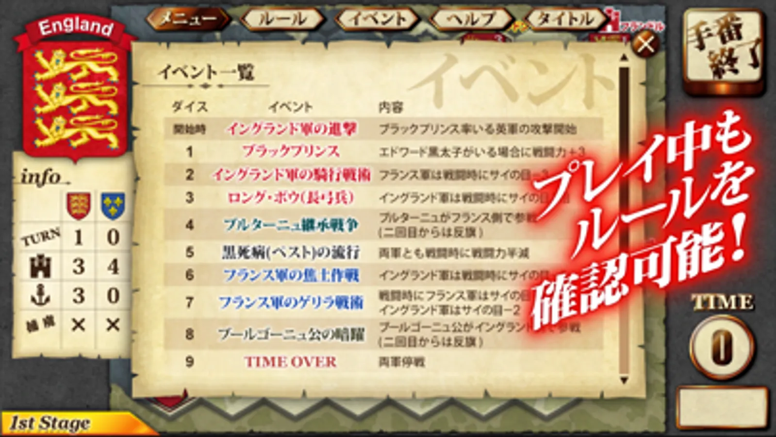 a.コンピューターと対戦(プレステージ、イングランド軍モード、フランス軍モード、エクストラモード)