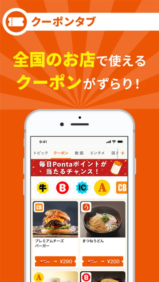 アプリ内のクーポンタブから、いま掲載されてるクーポン一覧をチェック。