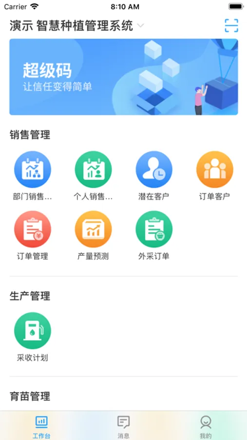 超级码致力于打造便捷高效的企业级产品监管、农产品全流程溯源、积分营销推广和大数据分析的系统工具。