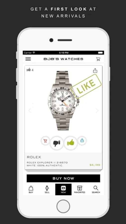 Get the first look on our Daily New Arrivals and stay in the know with the watch world’s most enthusiastic app: Swipe right to Like your favorite Rolex . Our FREE app is the fun and easy way to stay connected with all things watches. Explore, buy and share the best of Rolex, all in one place. From vintage classics to New Arrivals, Bob's App is the inside source for what you love most about Rolex