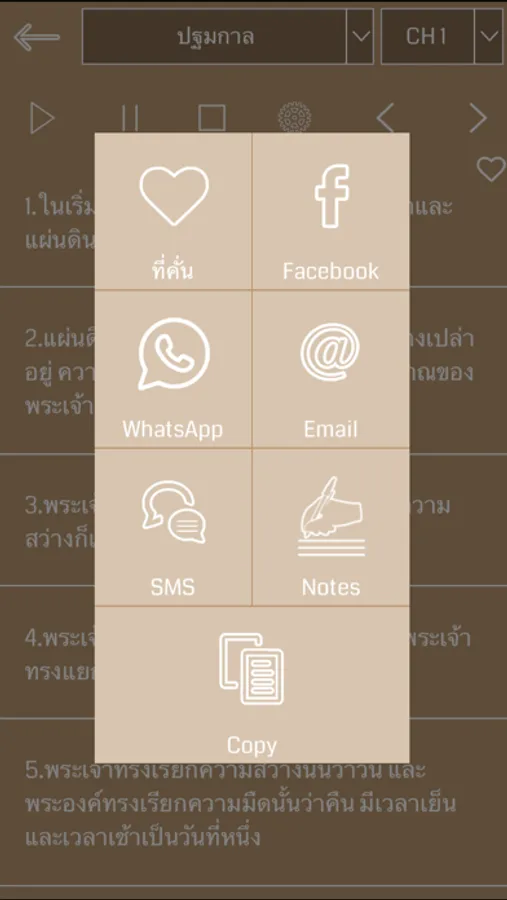 - Support for sharing the Thai Bible Audio in social media (Facebook, Twitter, Whatsapp)