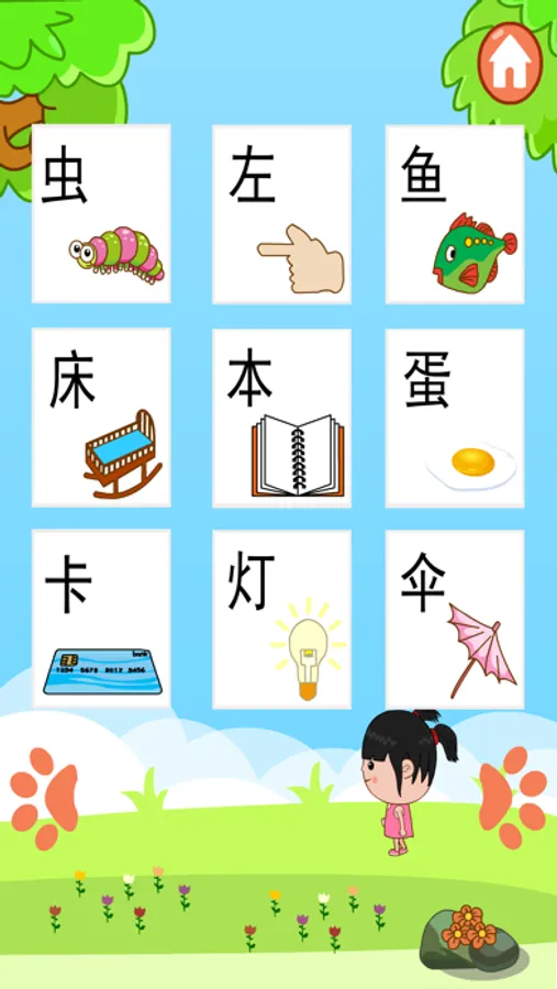 看图识字,结合图片与声音对文字加深记忆,轻松学会99个简单汉字。