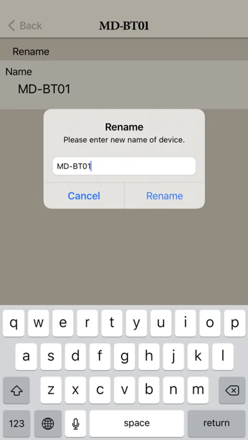 The MD-BT01/UD-BT01 utility allows you to change the names that appear on your iOS device to suit your preferences when using multiple MD-BT01s and UD-BT01s devices. In addition, this application updates MD-BT01/UD-BT01 firmware to: