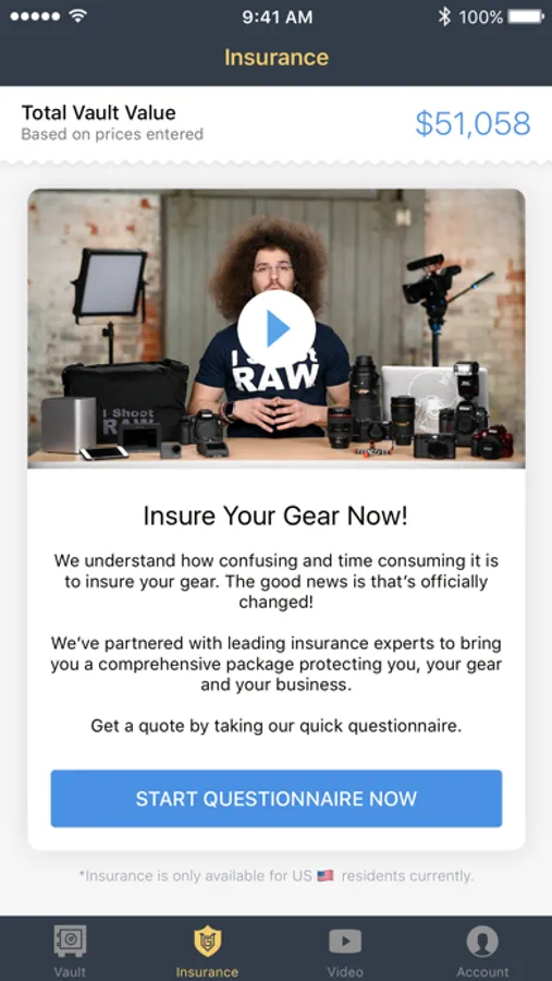 We at MyGearVault understand the importance of protecting your gear. That’s why we’re working with licensed professionals with access to top-rated insurance companies to find a solution that fits your needs. Right now inside MyGearVault you can take a short questionnaire to receive an insurance quote. And in about one business day, you can have full comprehensive coverage from one of our licensed insurance partners.