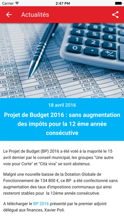 Application officielle de la mairie de Corte (20250), Haute Corse.