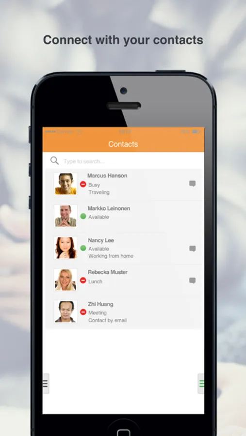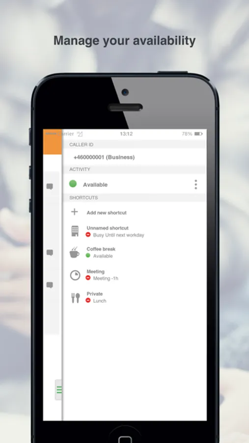 • Change your availability information quick and easy e.g. in a meeting, at lunch, on a business trip