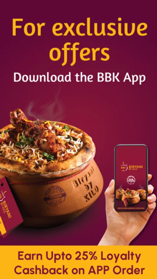 Biryani by Kilo India's most Premium Biryani & Kebab delivery chain - Fresh Biryani "Dum Cooked" in Handi for every individual order.