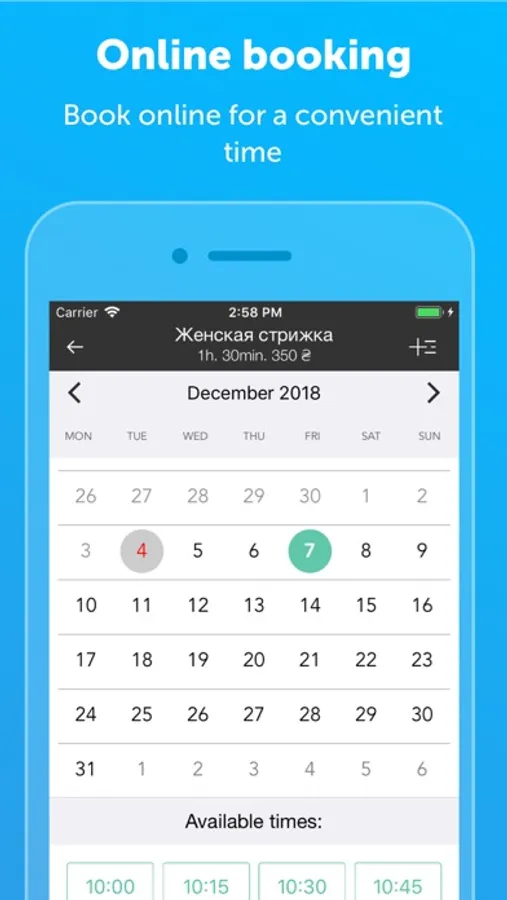 - Manage your schedule - in seconds you can book your clients on the calendar.