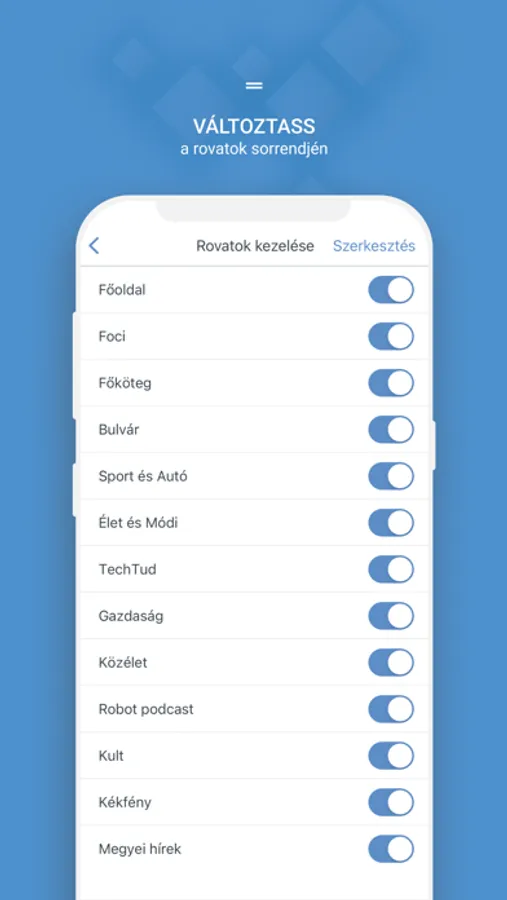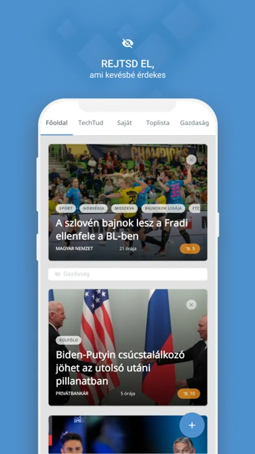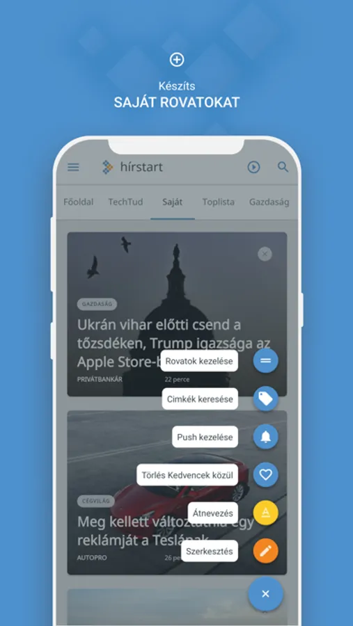 • Bármilyen elem a kedvencek közé menthető: az adott hírforrás adott témájú hírei, címkék szerinti hírcsokrok, és minden más