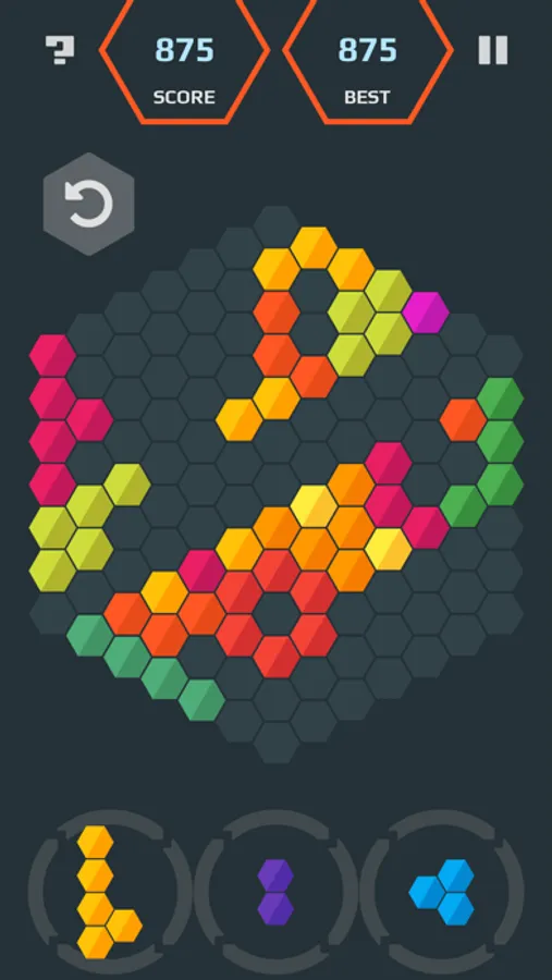 Place figures to game field to make lines which will be cleared and you get score points. You can undo the last move. The game continues until you able to place at least one figure. Try to get as many points as you can.