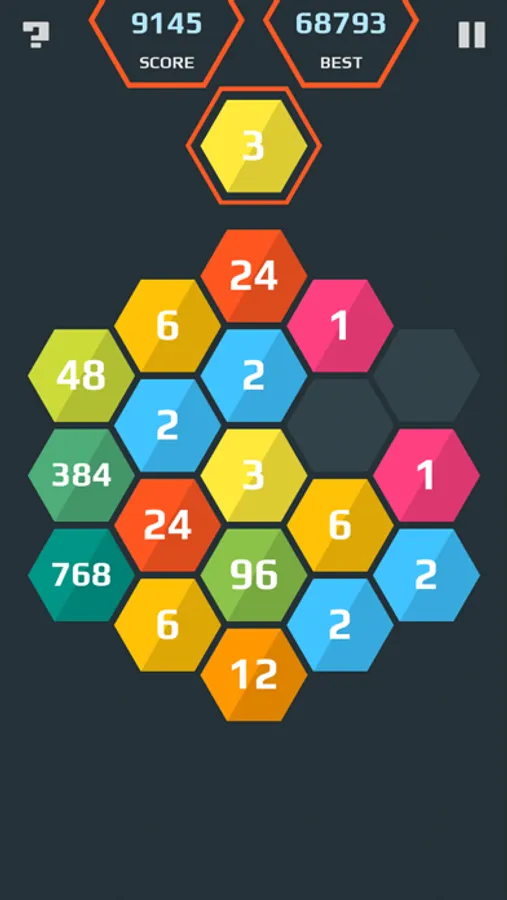 Touch at any place and slide your finger to any of six directions. All tiles that can be moved will be moved. Tiles can be merged: one with two and vice versa, three with three, six with six and so on. The goal is to get the tile with number 6144.