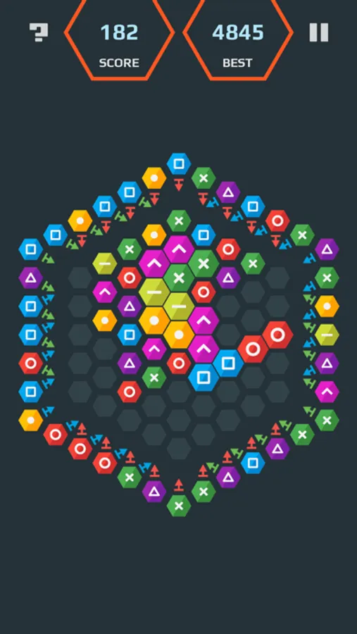 Touch at any place and slide in any of six directions to move tiles. Tiles that can be moved will be moved until they collide with other tiles. Combine 3 or more same tiles to clear them and get score points. You loose if the game field will be empty or full. Try to get as many points as you can.