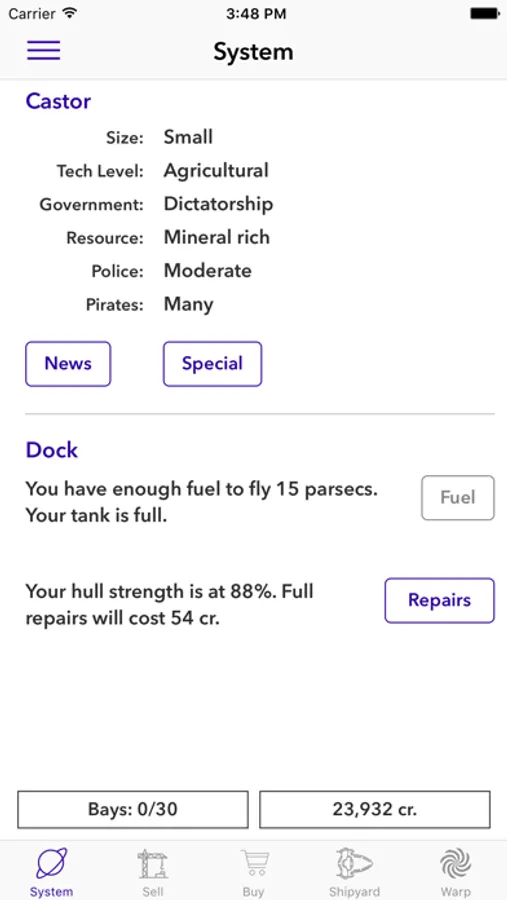 Travel the galaxy, become an expert trader, fight pirates, and run from the police in Space Trader! A much-anticipated remake of the hugely popular, timeless strategy game from the 1980s, Space Trader is a historically accurate port of the original Palm Pilot game by Pieter Spronck. It features the original ten commodities and more than 100 original planets, each with unique tech levels, governments, resources, and other characteristics.