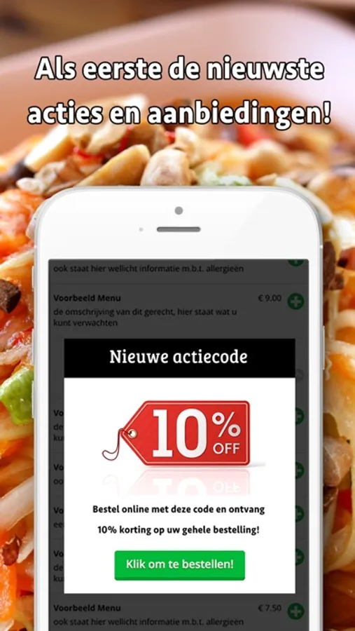 Download onze app en blijf op de hoogte van het laatste nieuws en de nieuwste acties, aanbiedingen en kortingen. Via onze app kunt u onze menukaart bekijken en direct vanaf uw telefoon uw bestelling plaatsen. U kunt via de app ook met iDEAL betalen!