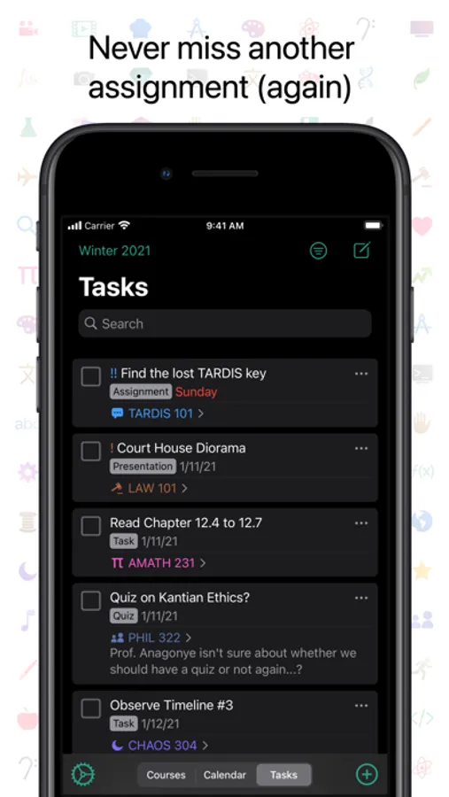 The app has a clean, simple, and intuitive interface. On top of that, Sigma Planner comes with 60 course icons to customize your classes, all on top of the customizations you get with the app. These course icons are also available as an iMessage sticker pack that comes with the app so you can share them with your friends!