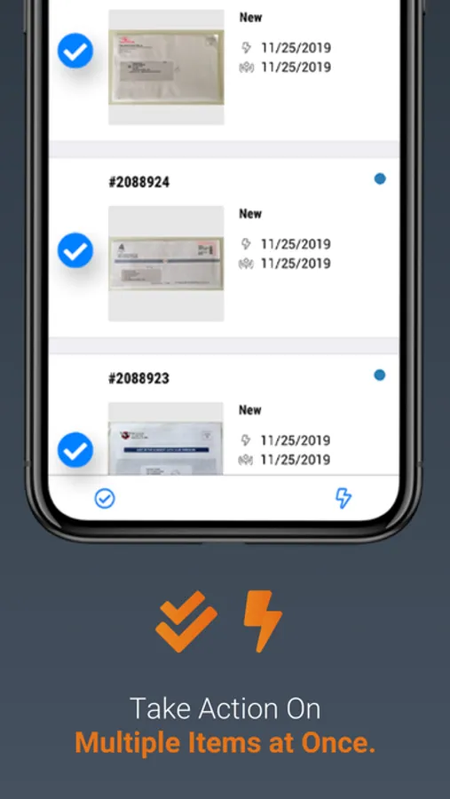 • Select all the mail items you’d like to take action on and click the lightning bolt when you’re ready.